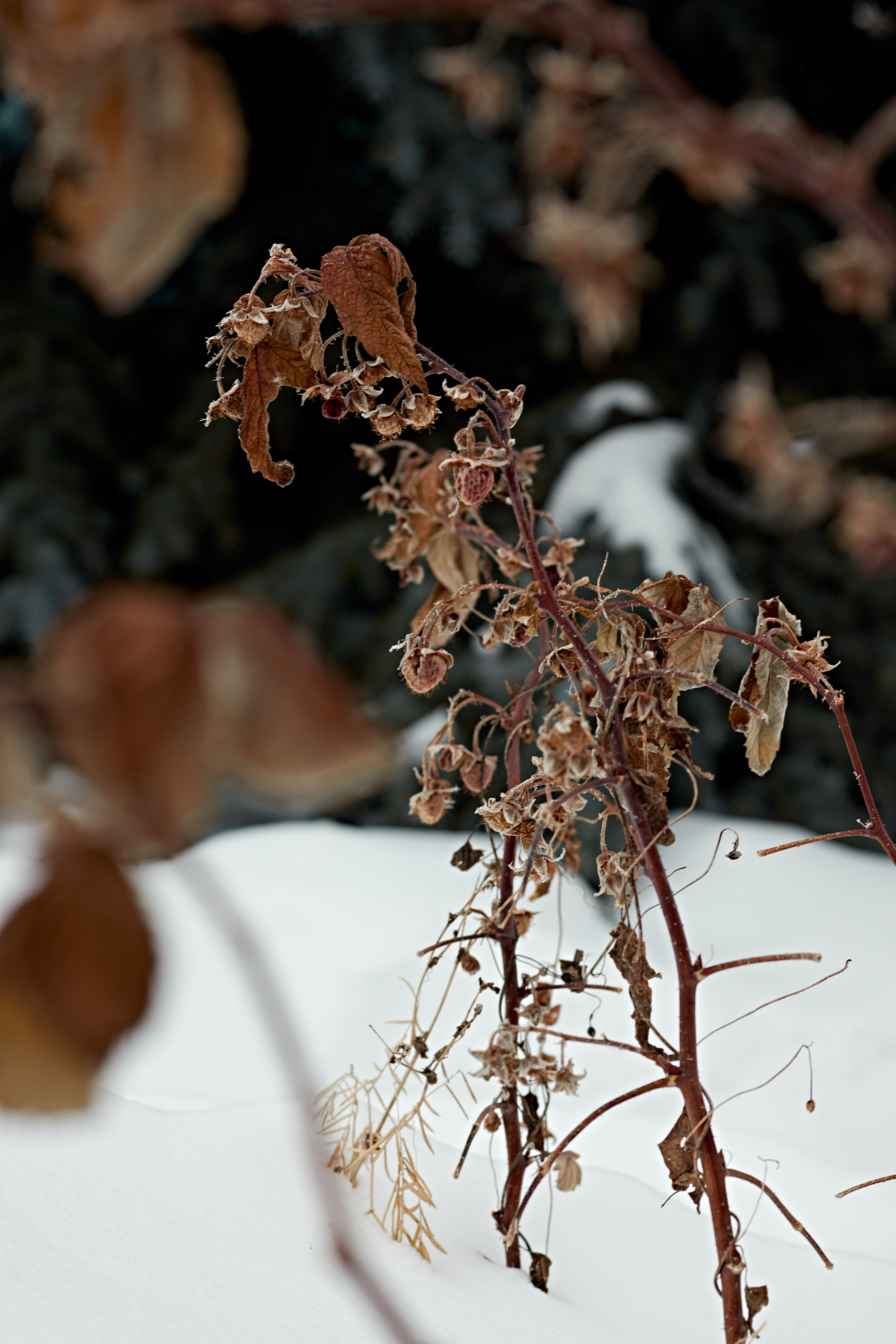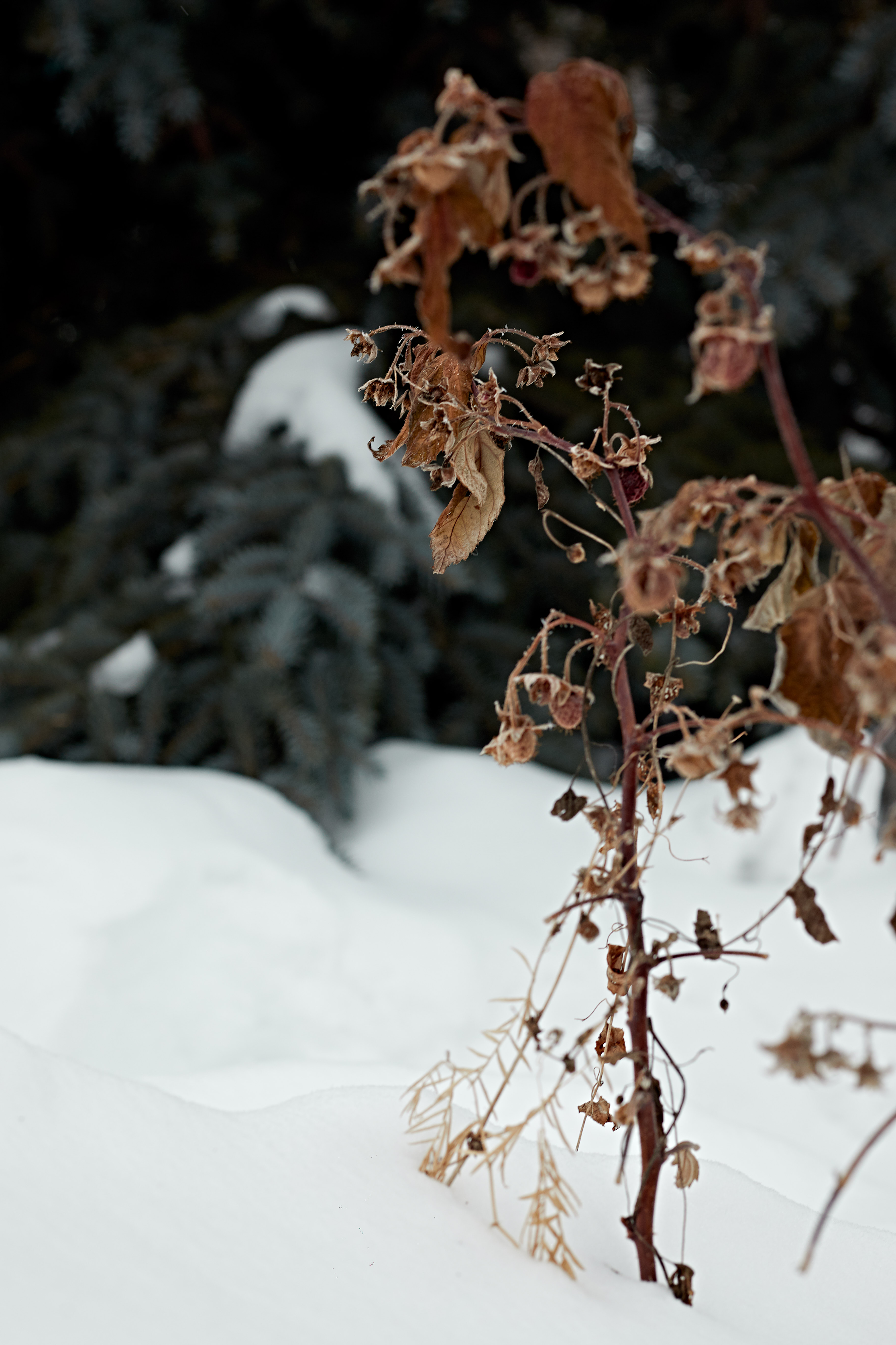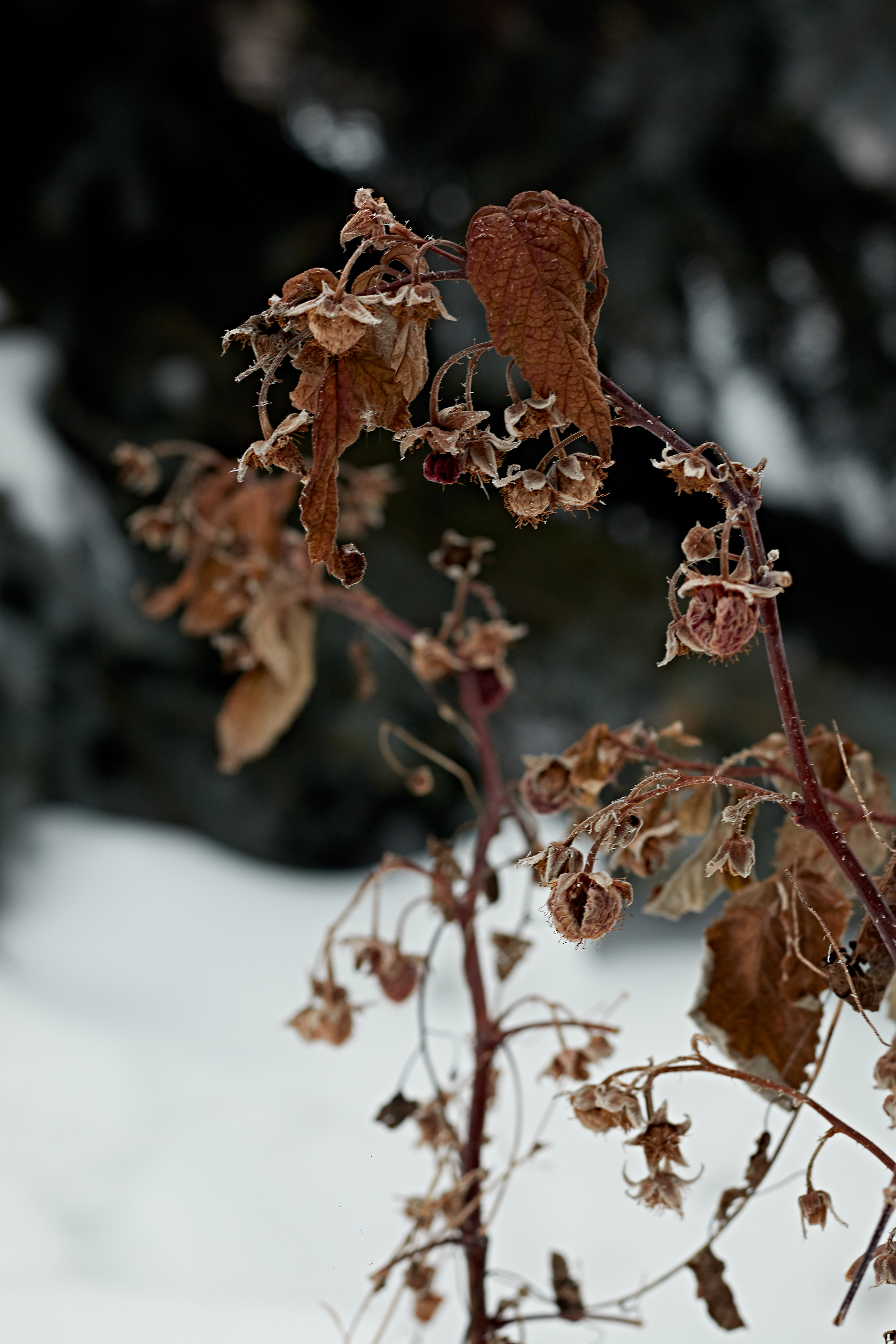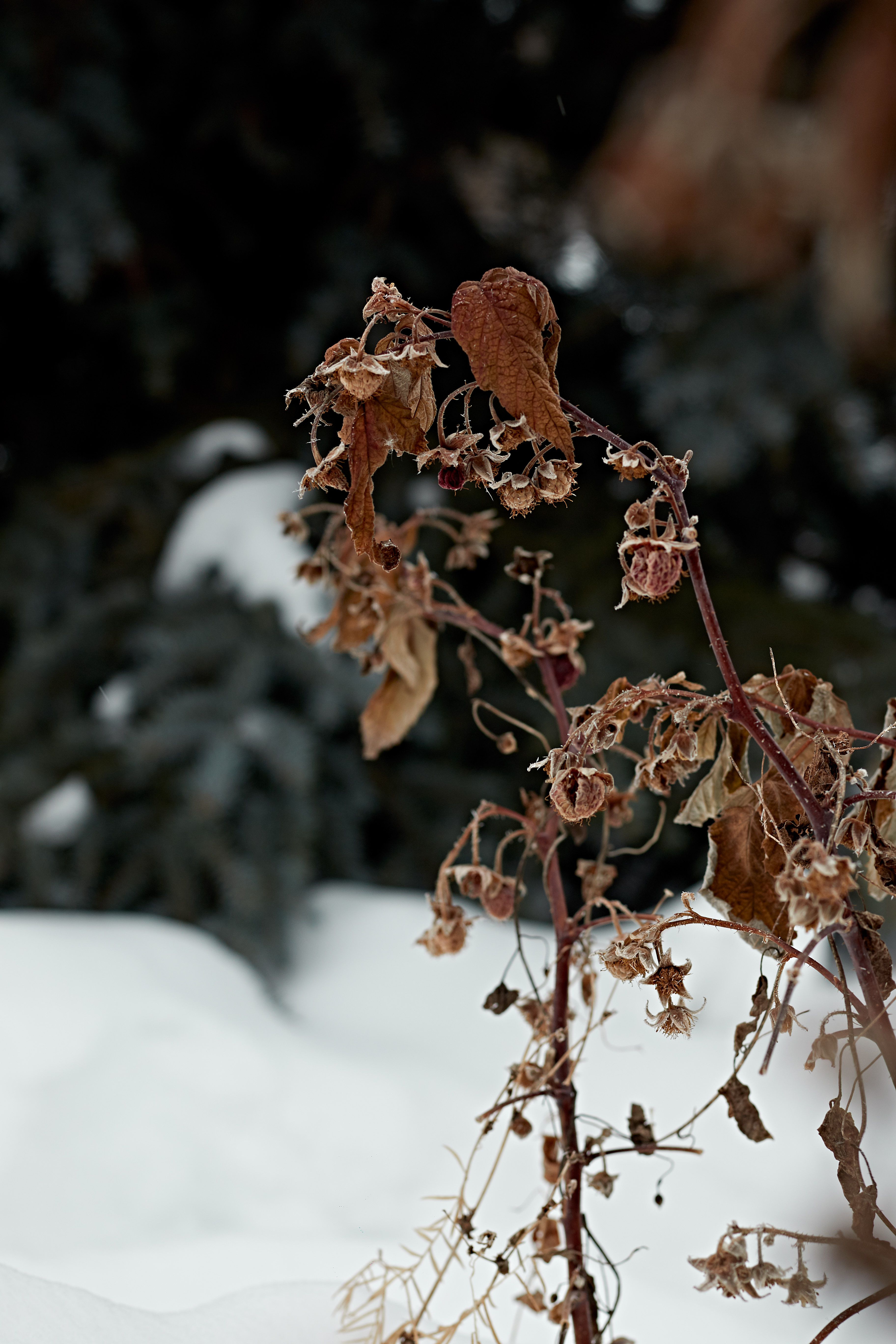Today I watched on dried raspberry bushes. Raspberry leaves had a beautiful brown color with a slight shade of golden radiance.