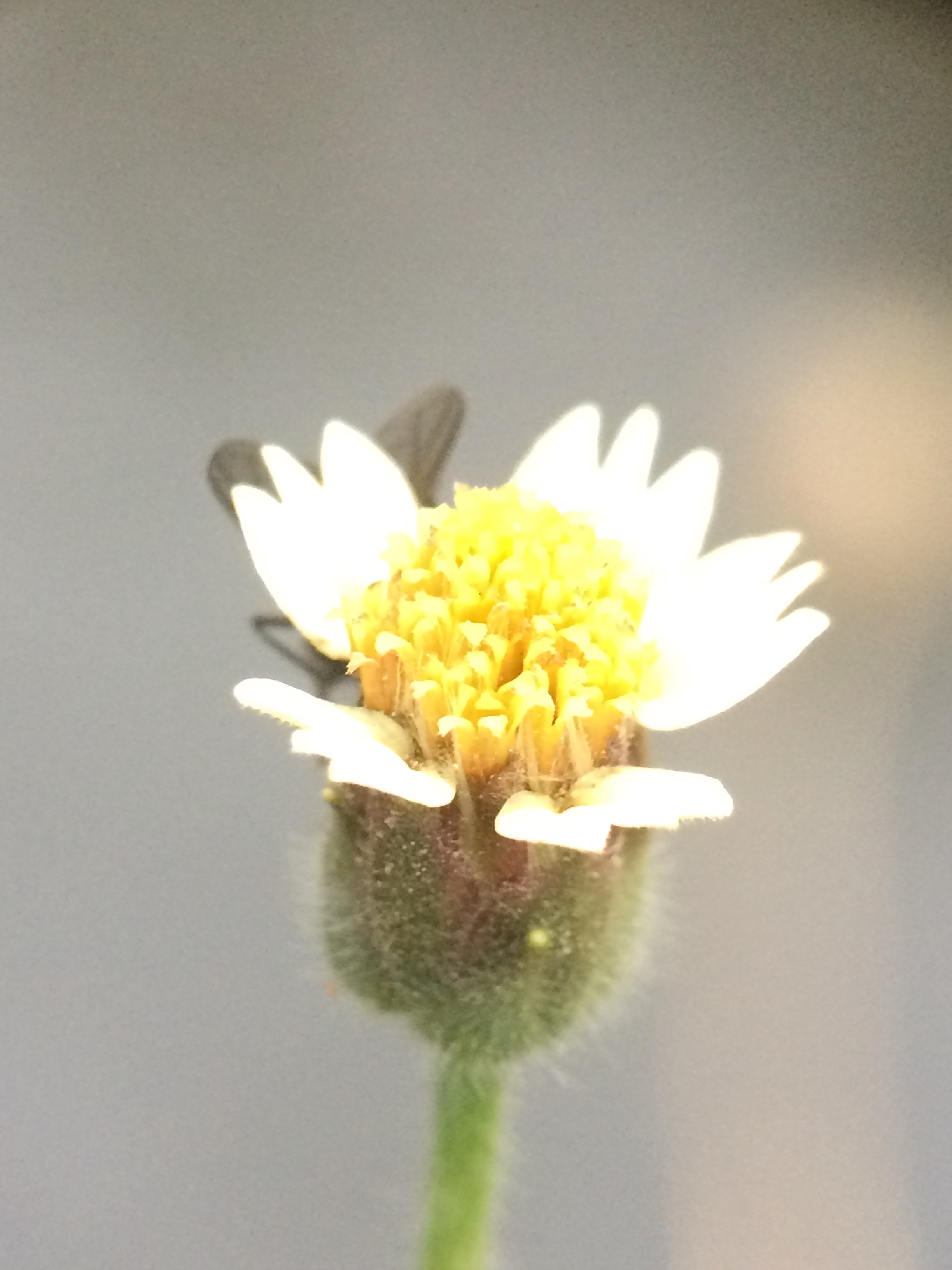 This afternoon I photographed a fly standing on a flower on the roadside of my house.