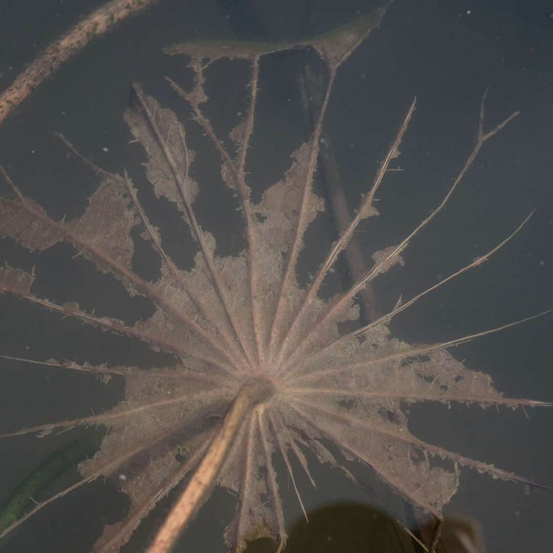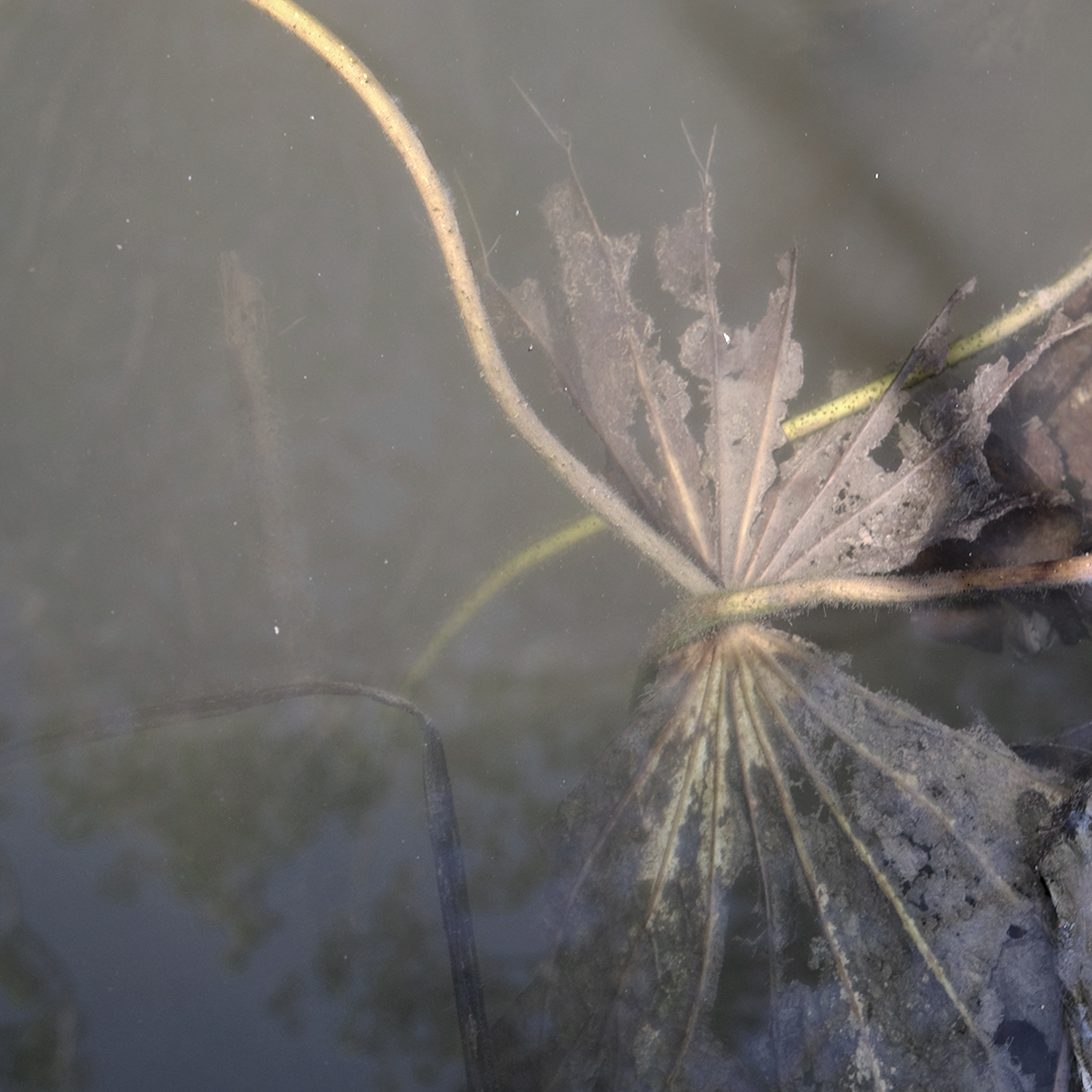 Eventually, I ended up with three photos that I liked as a series, not of the lilies, but of the dying leaves.