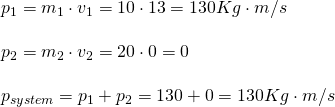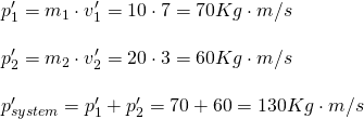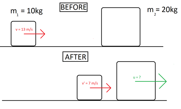 First of all, it's not a special case like the ones that we described last time, cause here the two objects don't have equal masses and the difference in mass is also not quite large (to talk about a light and heavy object). So, what do we do? With the information that is given to us, we just have to apply the conservation of momentum for the system before and after the collision. That way we have: