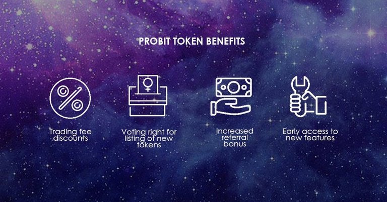 The primary usage of PROB is to pay for fees on the ProBit exchange. The % discount will be decided based on the membership level. The cuts will range from 10% to 50% as your holding increases (The more you hold, The better you will be receiving discounts).
