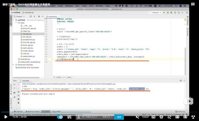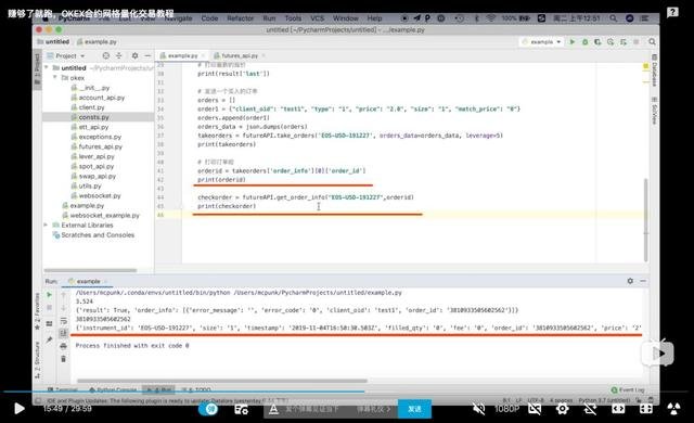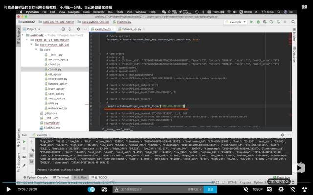 其实整体下来还是挺容易的,可能对于新手来说,面对这么一堆的代码会有压力。而其实,这套 OKEX 的 SDK 里,真正我自己写的部分只有定义了变量和 While,if 的语句,并没有其他的东西在里面。所以上手会比较容易,也因此我会拿出来做成视频,让新手去尝试。一般暂停视频,照着程序写,再逐句去理解就可以实现了。可能唯一会遇到的是语法问题和一些小的错误,这种情况下,一般都能在网上找到解答的。