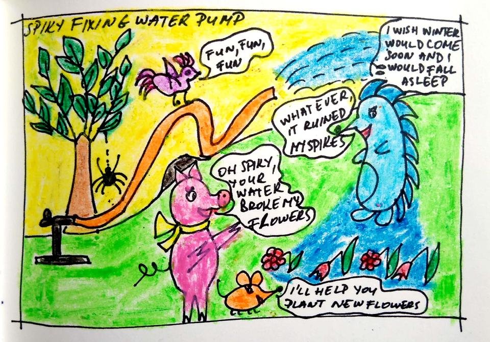 If anyone would like to help Spiky fix the watter pump and have fun, we have a drawing contest this weekend: https://steemit.com/pinkyandspiky/@organduo/pinky-and-spiky-drawing-contest-week-7-win-sbd-and-laugh-more