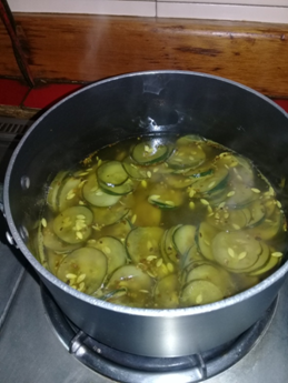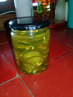 Then in a bottle previously sterilized place the cucumbers and the liquid where they were cooked, until the shoulder of the bottle, cover the bottle, let it cool and you can put it in the fridge or leave it in a dark and dry place .