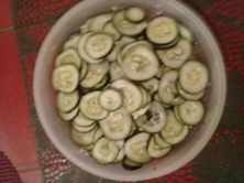 The cucumbers are washed and dried and sliced unpeeled approximately half a centimeter thick, add the salt, onion, stir well and put in the refrigerator for at least 3 hours (it can be one day for another), this in order to get as much water as possible.
