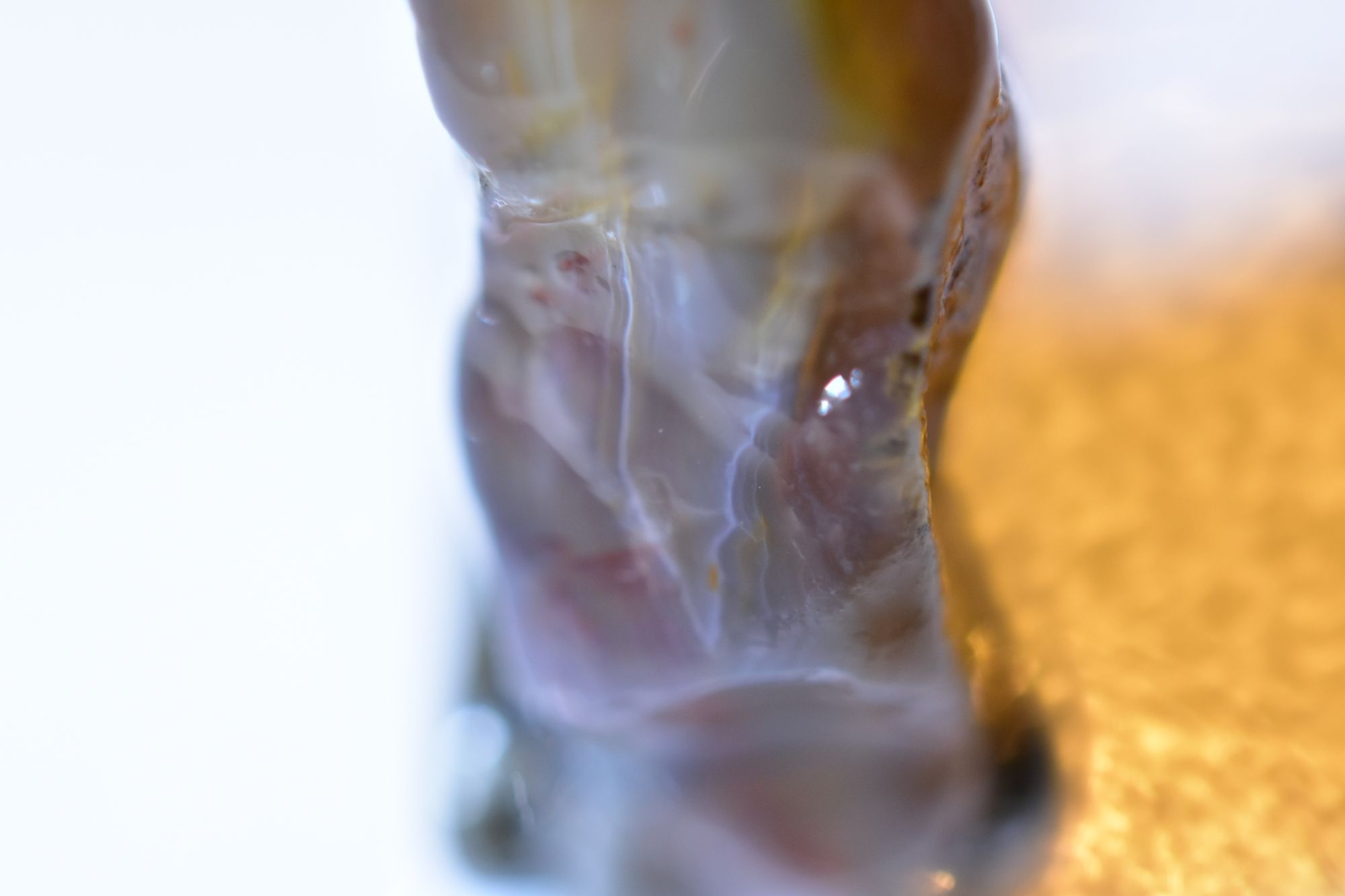 It's funny how I started this segment looking forward to the way the agates glow and I spend more time getting lost into the bands after I've given it some shine. Adding oil gave this agate so much character for its size, that I ended up taking more pictures for this part of the post than the others. So much detail packed into a thin rock, so I've included some extra shots! Enjoy the show!