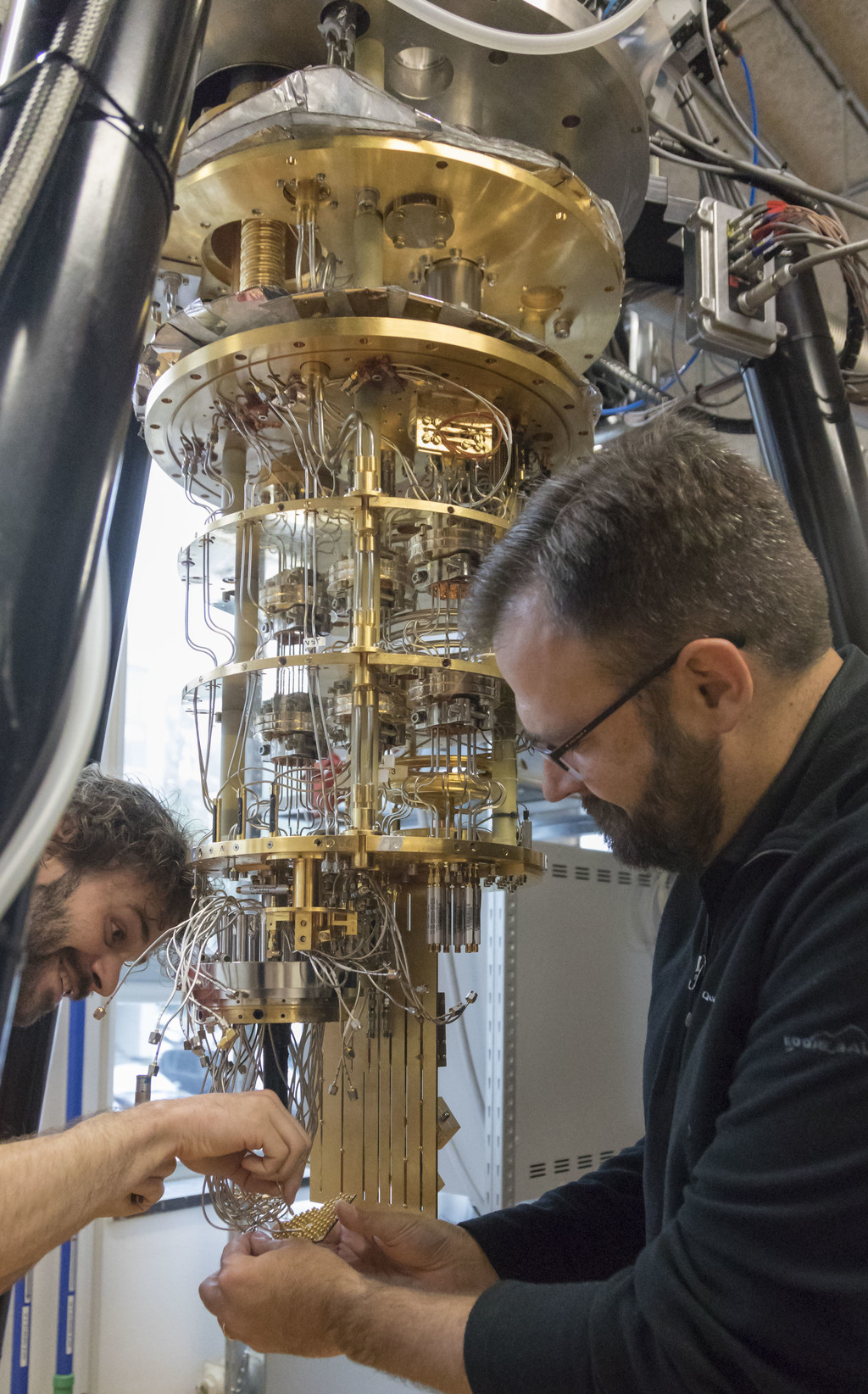 This processor could compete with today's supercomputers, however, it requires quite extreme conditions to work properly, for example, this processor must work near the absolute 0, at about 20 milikelvin (approximately -273 °C). This is achieved with a complex cooling system that you will see below: