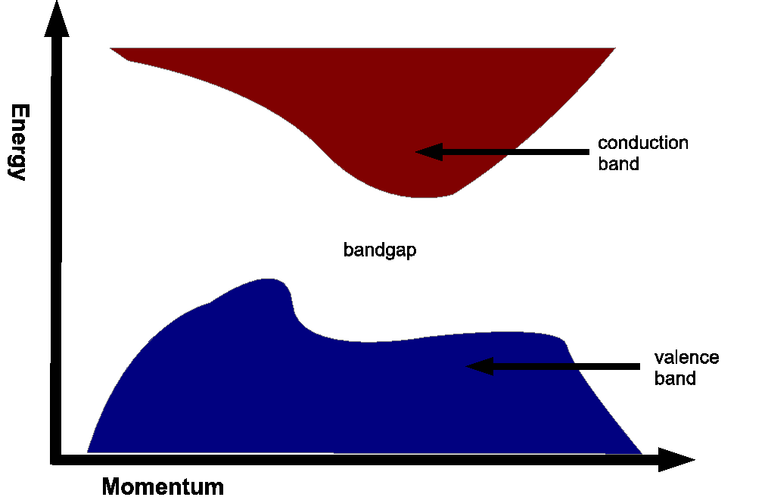 Indirect transitions: occurs when the ǩ wave vectors of the maximum of the band of the valence band and the minimum of the conduction band do not coincide, so a change of both energy and momentum is required.