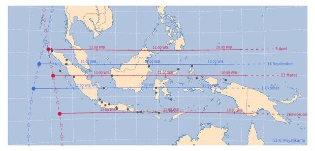 Indonesia will experience a shadowless day on March 21, 2018. This condition occurs because the sun will be just above the equator or the equator.