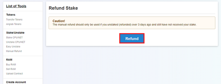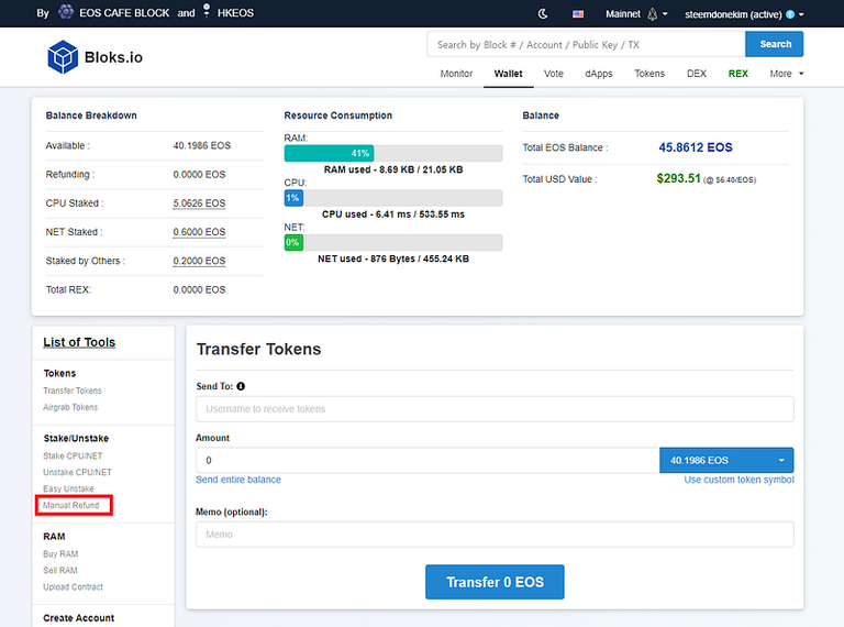 ① https://bloks.io/wallet 접속 후 Manuial refund클릭