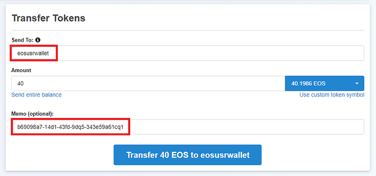거래소에서 이오스 입금주소를 발급받게 되면 “12자리 계정”과 함께 복잡한(마치 이더리움 주소 같은) 문구를 받게 되는데 이 복잡한 문구를 반드시 메모란에 넣어주어야 합니다.