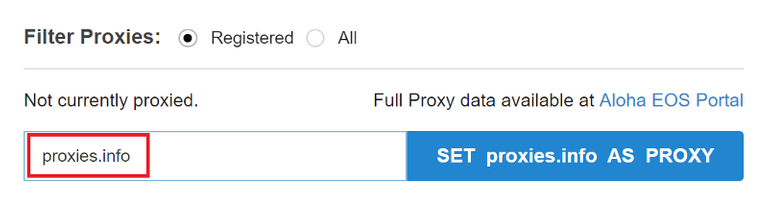 ② 위와 같은 화면이 나타나면 검색창에 proxies.info 를 입력하신 뒤에 파란색으로 된 [SET proxies.info AS PROXY]버튼을 클릭해주세요