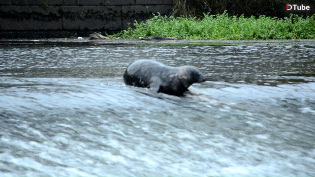 Seal sliding down the weir, Cork Citysilverishfox (25)in #seal • 8 years ago (edited) ▶️ DTube ▶️ IPFS #river #wildlife #ireland #dtube