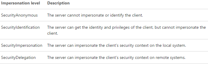 A normal user obtaining an Identification Token as Local System is not necessarily an exploit in and of itself (some would argue, but at least not in the eyes of Microsoft). To understand why, a review of Token Impersonation Levels is required.