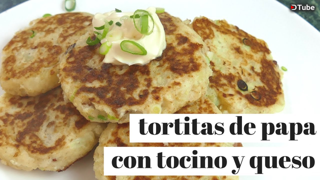 Hola amigos! hoy les traigo esta deliciosa forma de cocinar las papas! Son unas ricas tortitas llenas de sabor y texturas porque llevan queso, tocino doradito y cebollín. Anímense a hacerlas y me cuentan que tal el resultado! un abrazo