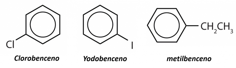 - Como tienen enlaces simples y dobles alternados, una molécula de estos compuestos debe ser capaz de deslocalizar sus electrones, por lo que se representan mediante un círculo dentro del anillo.