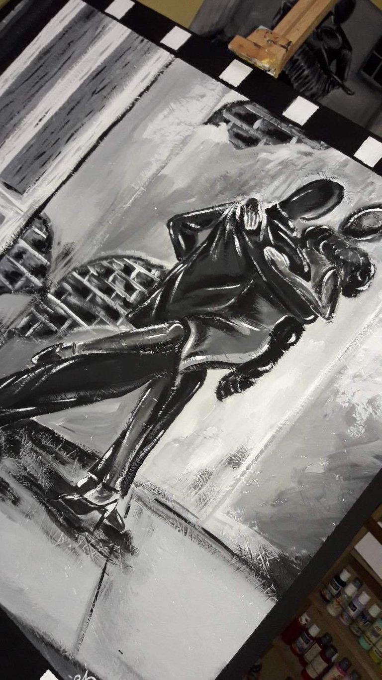 hola amigos de steemit!!! hoy le voy a mostrar una secuencia de fotos de un cuadro que realice con madera reciclada, utilizé acrílicos y lo ponte en escala de grises.