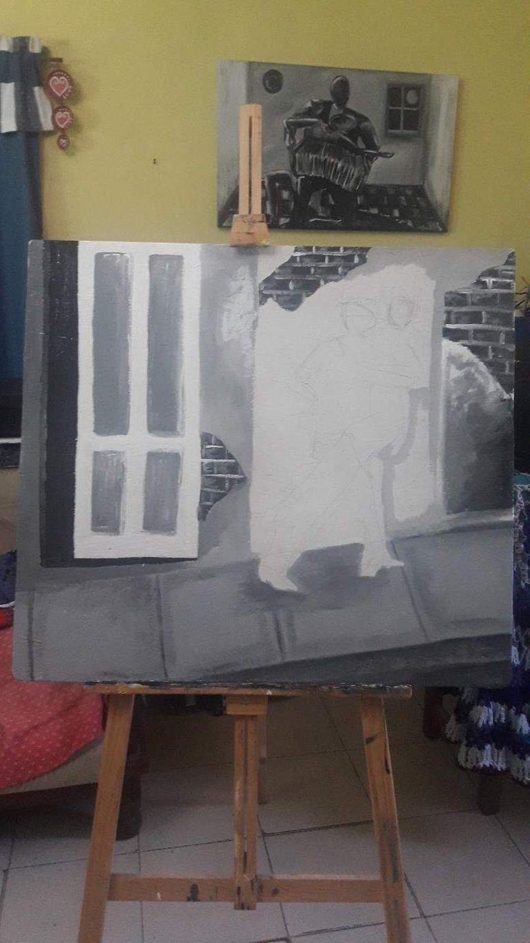 hi friends of steemit !!! Today I am going to show you a sequence of photos of a painting made with recycled wood, I used acrylics and put it in gray scale.