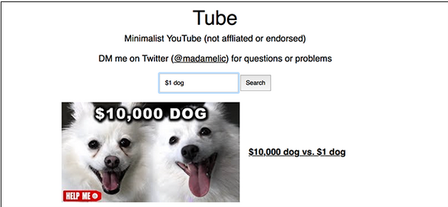 Busca un video, mira ese video, y luego sigue con tu vida. Se trata de Tube, un sitio web de terceros que devuelve a YouTube a lo básico.