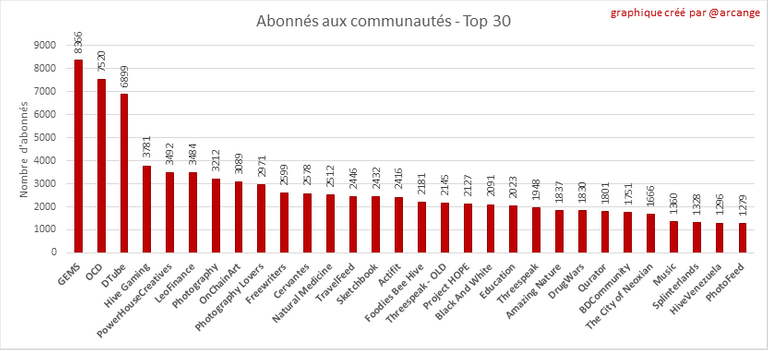 Ce graphique montre les communautés avec le plus d'abonnés.