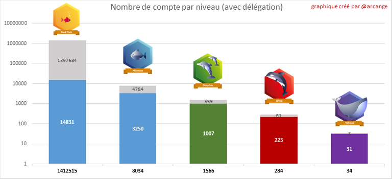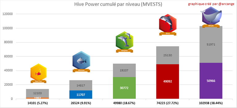 La partie grise de chaque colonne indique le Hive Power inutilisé par les comptes inactifs (voir la définition d'inactif ci-dessus).