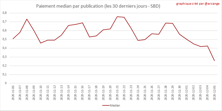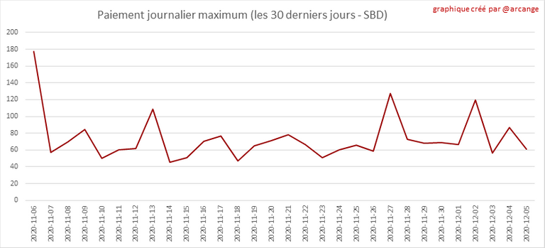 Ce graphique montrent la récompense maximale payée sur un message (ou un commentaire) au cours des 30 derniers jours.