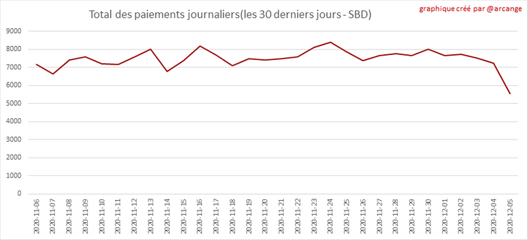 Ces graphiques montrent le total des paiements distribués (publications et commentaires) pour chaque jour.