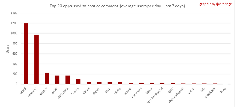 This graph shows which applications are most used to publish posts and comments. Please note that the same user can use several different applications.