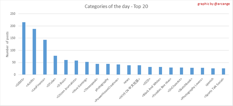 These graphs show which main tags have been the most used for publishing posts for the whole blockchain lifetime and for the last day.