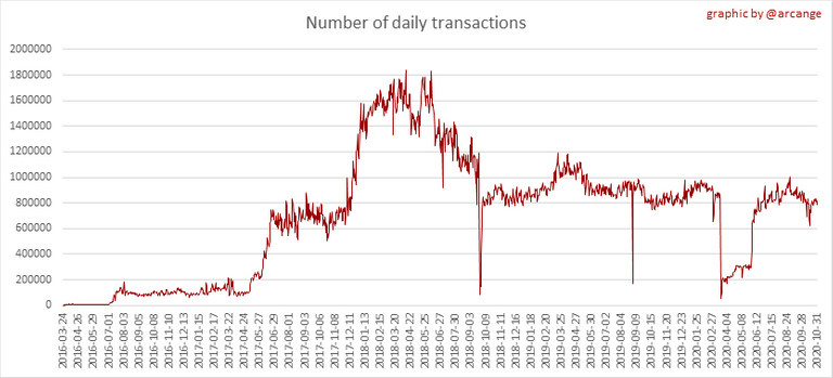 This graph shows the number of daily transactions. This gives you an idea of the whole activity on the blockchain.