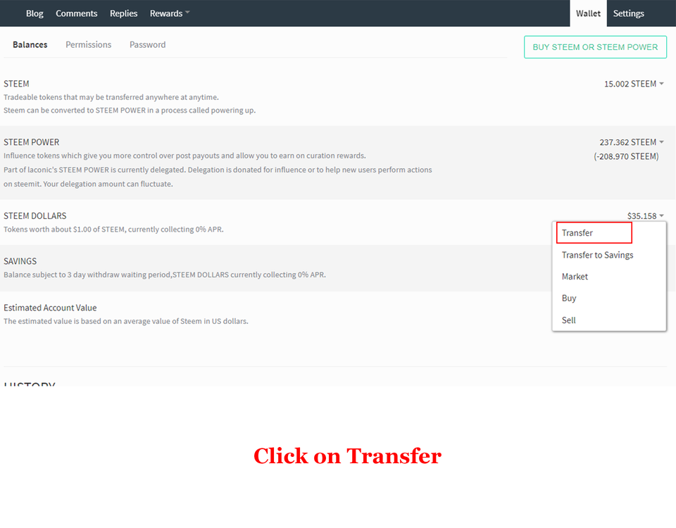 Step 5 : Select the STEEM/SBD.