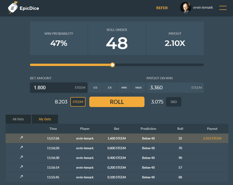 EpicDice is a decentralized dice game built on top of Steem blockchain which aims to provide a refined gambling experience while keeping simplicity intact.
