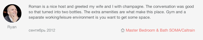 Having checked the dates of the football Euro Cup in Kiev, I was able to greatly increase the price for the correlating days. I was able to fully book the apartment for the time of the Euro Cup and I made an outstanding profit in the process.Honestly, I could not complain about the influx of guests even after the Euro Cup. The average monthly use of the apartment was typically around 65–70%.Getting back to San Francisco. When I moved there, I thought Airbnb would be a great way to learn about the city and the local population. I changed apartments every week and after 3 months, I was able to make an educated decision in which neighborhood I wanted to reside permanently.It also became clear that the flow of the local real estate market will play to my advantage and with the help of Airbnb, I will not only make enough to cover my living expenses but make money in the process. That is exactly what happened ☺I rented an apartment with two bedrooms and two bathrooms in Avalon Mission Bay North, thinking that I would rent out one of the bedrooms and the living room couch on a regular basis.The bedroom was rented nearly 100% of the time and for 5 months, I felt great! However, my ideal world would soon come to a crashing halt when I got a very politely worded letter from the administrative offices of Avalon Mission Bay North that gave me the option to either stop competing with their guest accommodations or move out of my apartment. I did not want to move, so I found myself a permanent roommate.In summary, I hosted 70+ wonderful guests in Kiev, San Francisco and Sevastopol; and I made a little over $40,000 with the help of Airbnb. Now I travel only through Airbnb, never with booking.com, only perhaps in situations where I need to stay only one night.