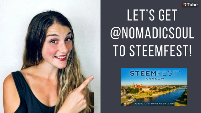 I wanted to make this video because I think as a community, it's important that we stand around and support awesome users like @nomadicsoul. My hope is that I'll not only be able to send her some SBD to help fund her travels - but maybe also help a few more people find out about her raffle. If you have the means to give this girl an upvote, or donate to her travel, please do. Steemfest attendees will be better off because of it. <3