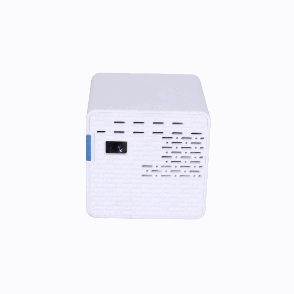 This small white cube is an LCoS projector or liquid crystal on silicon with a LED-based light source, a brightness level of 50 lumens and a claimed lifetime of up to 20,000 hours.