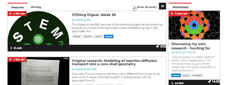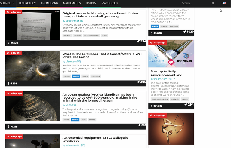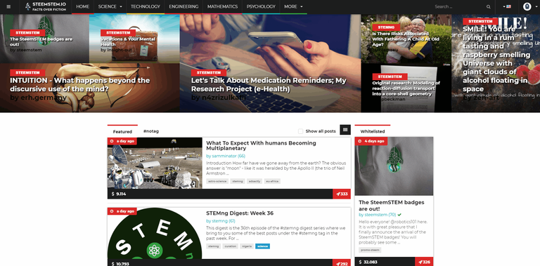 Thanks for featuring this website. It's a great project hub for curating STEM-related content in the STEEM blockchain. I like how the website only features manually curated content. It gives the site more credibility and really establishes the STEM Community's "fact over fiction" motto.