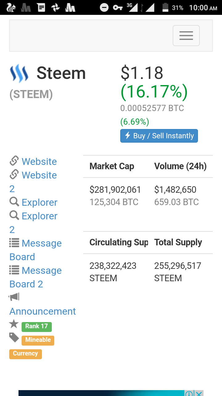 Steemit is Going GAGA . Steemit is Maintaining it's Balance . Today's Market Prize is Something to Write Home About !!!jimscope (52)in #steemit • 8 years ago (edited) Today's market Prize is booming. Steemit market Prize as of today is something to write Home about! $1.18 is no joke and from forecast it May climb up to 5 dollars, that is August through to September. Hurry guys, let's get this party 🎊 started!!! #steem #news #investing #stats