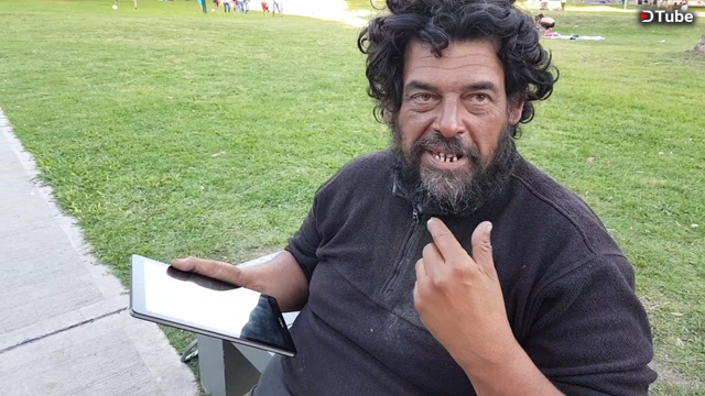 se ve muy contento, realmente parece un niño... Eso es muy bonito. Dios te bendiga por ese gran corazón!... sigue ayudandolo. 😊