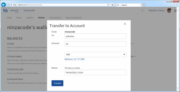 4.2. 외부 거래소에 스팀달러(Steem Dollar) 전송하기