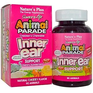 9. Nature's Plus, Source of Life, «Парад животных», детское жевательное средство для поддержки внутреннего уха, натуральный вишневый вкус, 90 «животных»