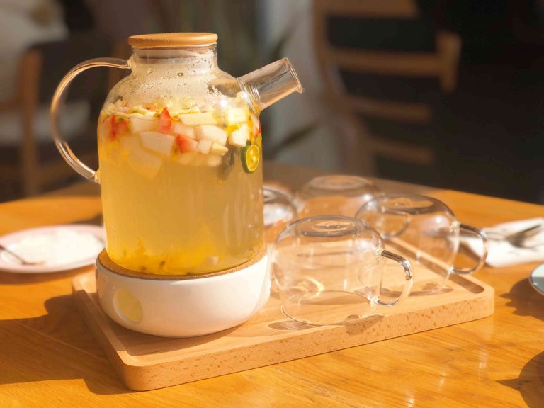 水果茶里的水果种类繁多,有苹果、草莓、牛油果、菠萝、百香果,再加上一包绿茶,淡淡的茶味与水果的香甜结合在一起真的非常美妙。