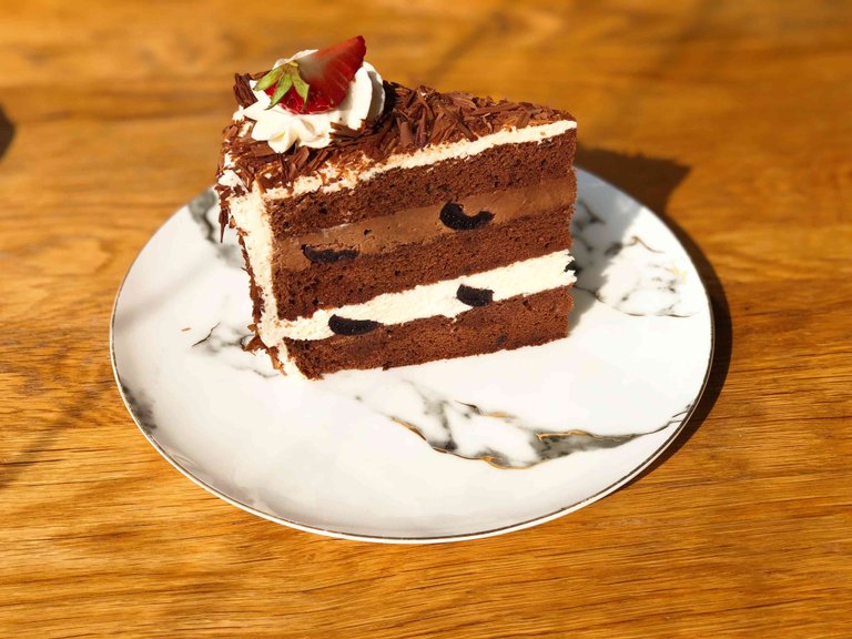 那这份黑森林裸蛋糕究竟有什么值得推荐的地方呢,那就莫过于奶油了,几乎品尝过这家甜品店的朋友们都说,这里的奶油一点也不腻。