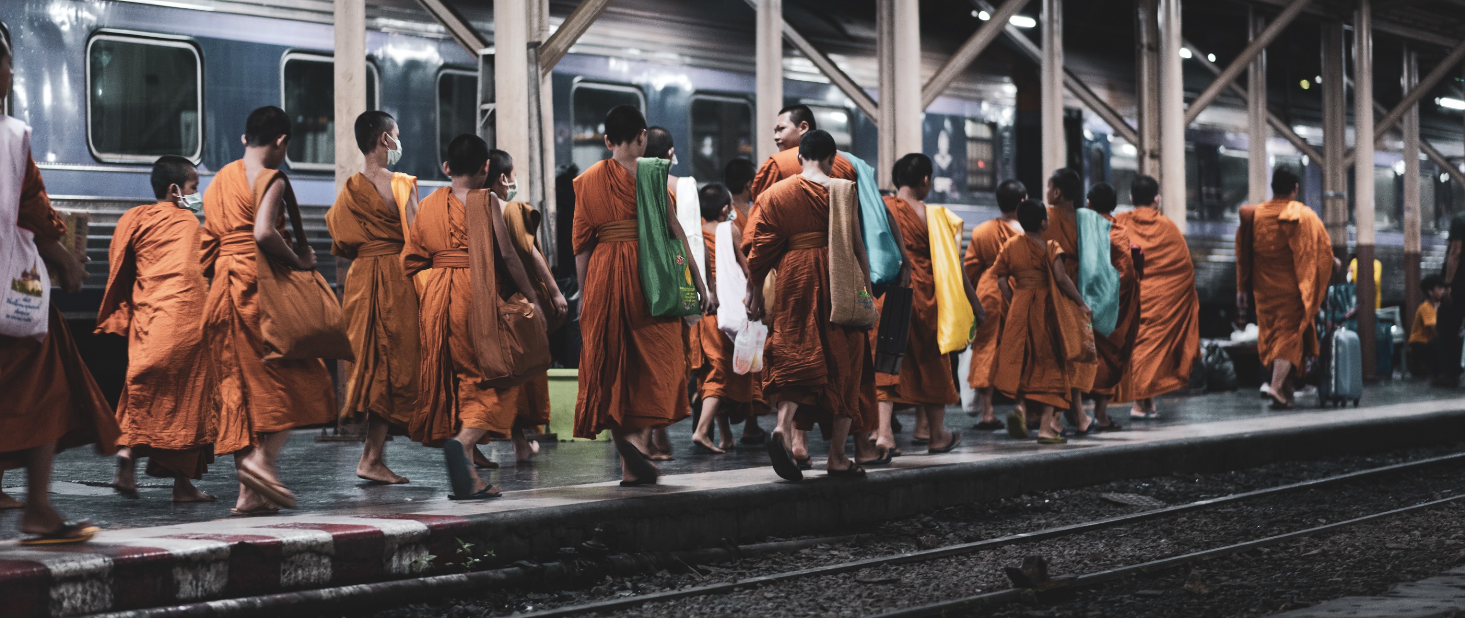 I was actually already done with my shooting for the day and also felt quite exhausted of walking around the platforms for many hours - So I had a little break sitting down behind some trains and I basically just looked around and spotted 2 monks first walking along the platform and somehow a lot more were coming and I had the opportunity to take some photos of them.