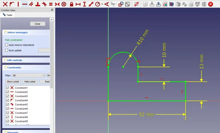 STEP 01-: Select the front plane and create the profile as shown in below image and fully constrained it with proper dimensioning.