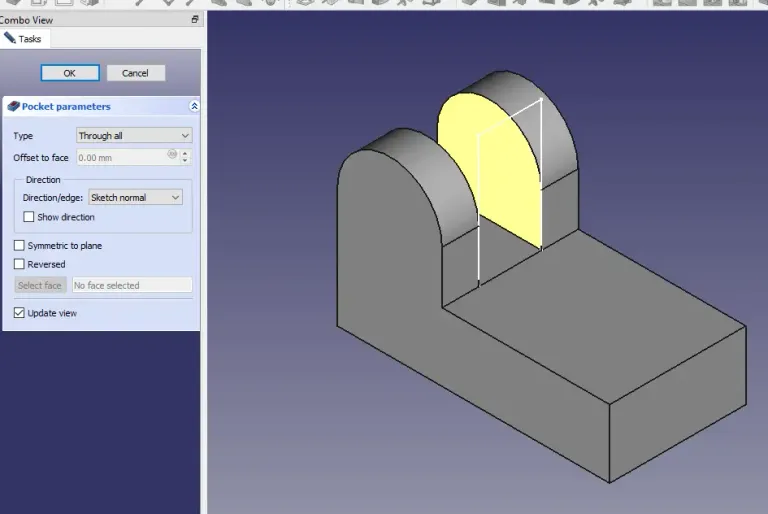 STEP 04-: Now use the pocket tool from part design tool bar and remove the material and keep end condition Through All as shown in below image.
