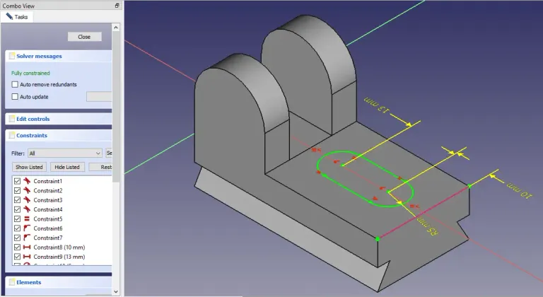 STEP 07-: Now select Slot option from sketcher toolbar and create a slot and constrained it with shown dimension in the image.