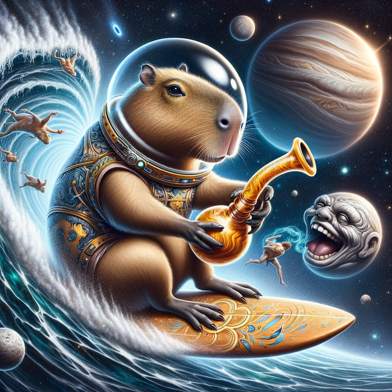 Behold, the interstellar stand-up act of Carl the Capybara, the rodent who skyrocketed to cosmic comedy fame with a DMT trip so side-splitting, the fabric of reality nearly ripped from all the laughter.