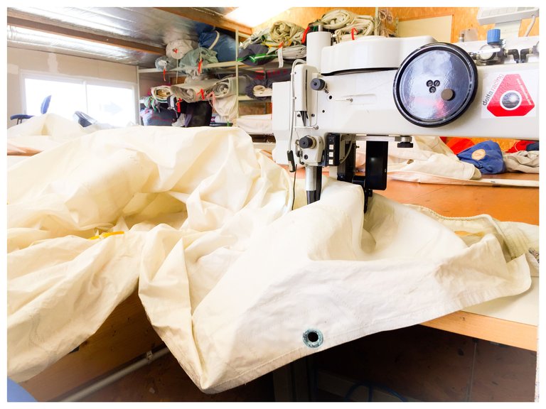 The episode of the big storm definitely convinced me to continue the restoration of my boat and improve its operation. First thing, I went to see François at the sail shop. On the large floor, it spreads what remains of my sail. I feel that he will tell me that it must be changed and that we will have to pay some 800 Euros for a new mainsail.