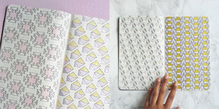 When it comes to having a low barrier creative outlet I love to just sit down at times and simply start a pattern in my sketchbook without thinking too much. I do it whenever I need a creative jump start and try to have it hand at all times so I can make use of time that I would otherwise waste on trains, planes and queues looking out of windows, staring into space or getting sucked into a social media session! It is a nice break from the ‘serious’ surface pattern designing I set myself to do most of the time. I find it’s nice to just have a bit of pattern play sometimes!
