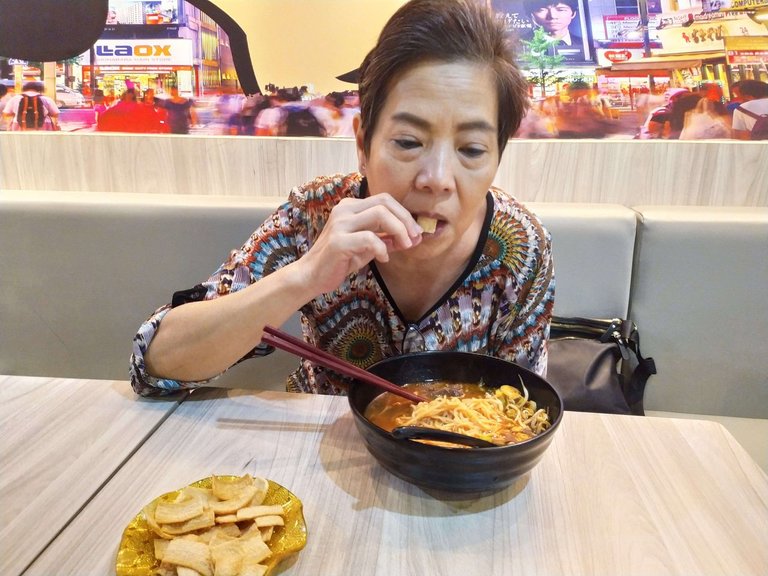 both of us chose spicy ramen. We only chose level 1 for the spicy. But what we got was extra spicy, and sweet too. I thought this was not a pure, authentic ramen, it was like central javanese food, so sweet. But the hardness of the noodle was fine. The one thing that tasted better was the welcome snack.